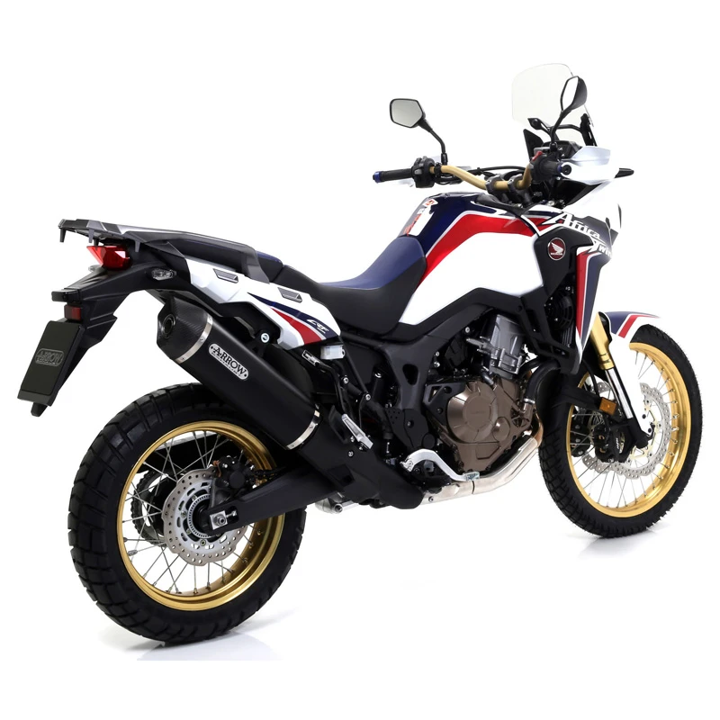 Arrow 72621AKN Dark Aluminum Maxi Race-Tech Silencer with Carbon End Cap for Original Collector is made specifically for Honda CRF1000L Africa Twin (2016-2017).