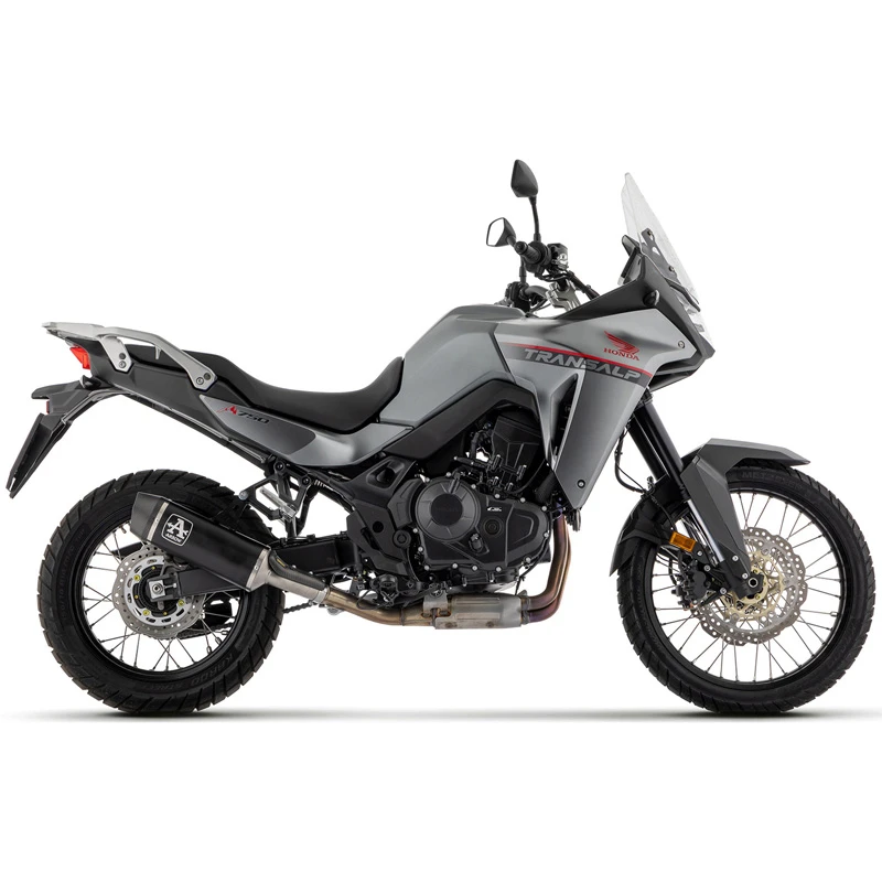 Arrow’s 72641AKN Indy Race Slip-on Exhaust, Aluminum Dark with Carbon End Cap is made specifically for Honda XL750 Transalp (2023-current).