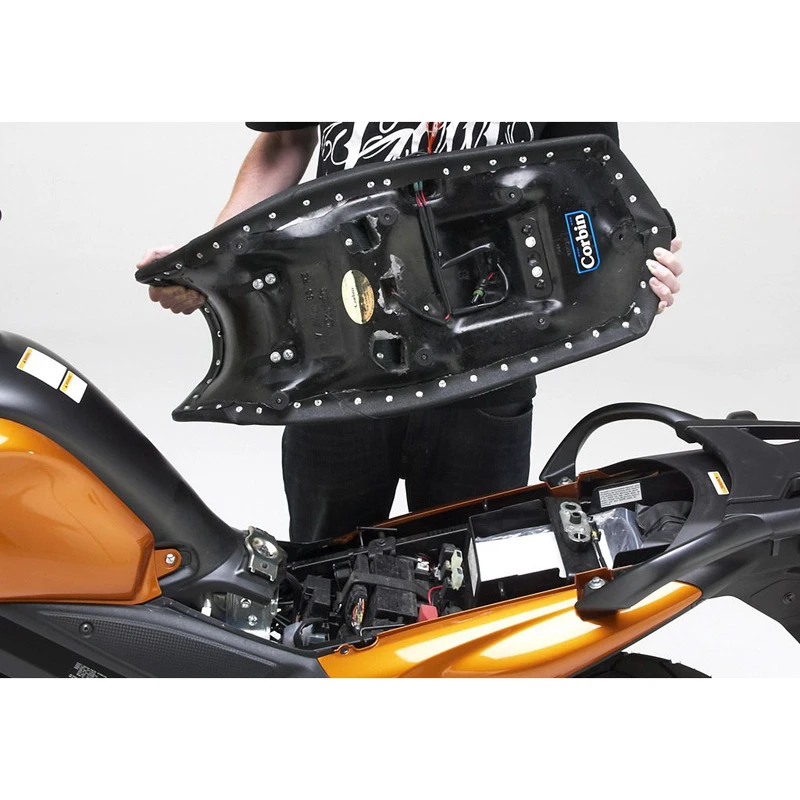 - Mounts easily with brackets preinstalled on the Corbin saddle that mesh with your stock key lock system. Simply slide the saddle into place nose first to engage the tongues and lower the rear into place. Push firmly on the passenger platform to latch and you’re ready to hit the road.