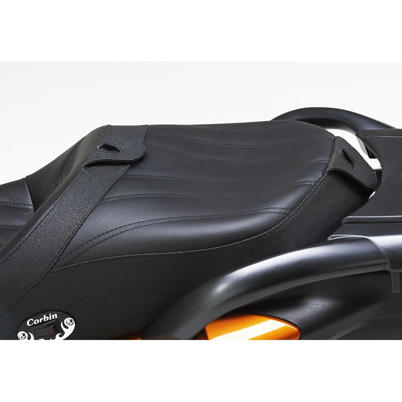 - Mounts easily with brackets preinstalled on the Corbin saddle that mesh with your stock key lock system. Simply slide the saddle into place nose first to engage the tongues and lower the rear into place. Push firmly on the passenger platform to latch and you’re ready to hit the road.