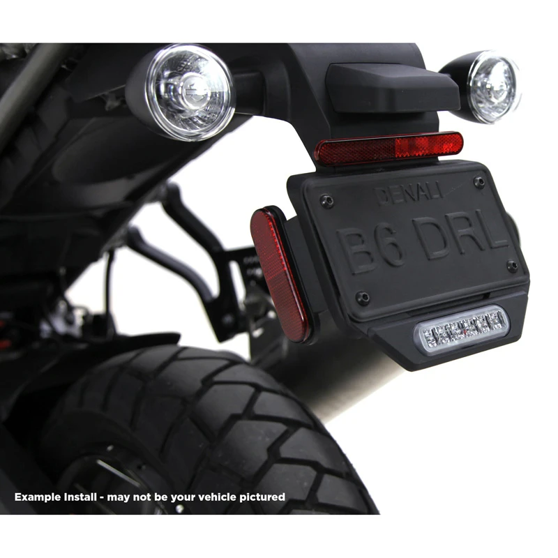 This pre-configured product bundle includes a single or dual B6 brake light, a plug-&-play B6 brake light wiring adapter for the KLR650, and a license plate mounting bracket kit that positions the B6 brake lights in the ideal location on the back of your KLR.