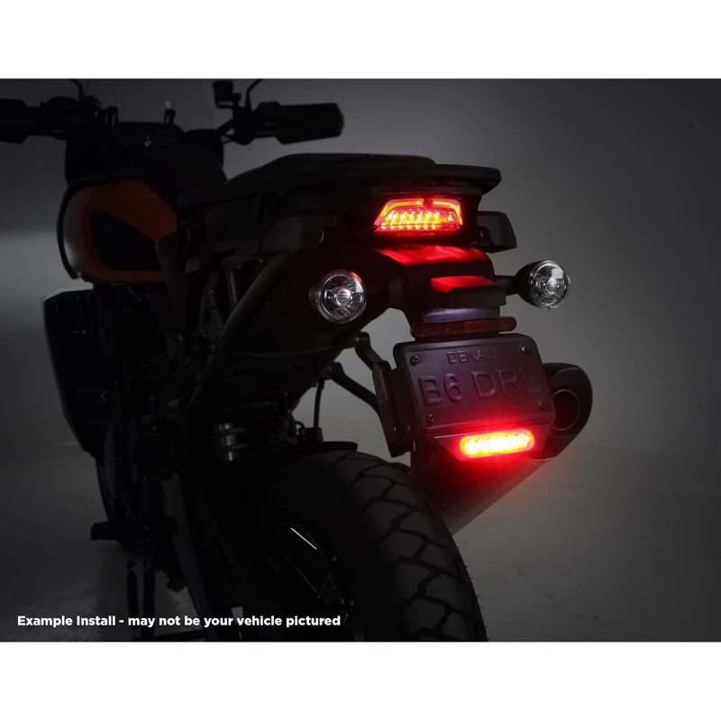 This pre-configured product bundle includes a single or dual B6 brake light, a plug-&-play B6 brake light wiring adapter for the Africa Twin, and a license plate mounting bracket kit that positions the B6 brake lights in the ideal location on the back of your CRF1100.