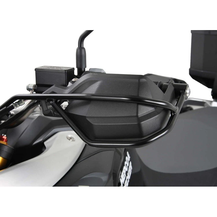 Hepco & Becker’s 420.3530-01 Handle Protection Set is made specifically for Suzuki V-Strom 1000 (2014-current). This Handle Protection set is one of if not the strongest handlebar protection on the market. The set consists of a left and right piece that go in place of the bar end weights and connect on top of the handlebar risers. This is to be used along side the stock handlebar guards.