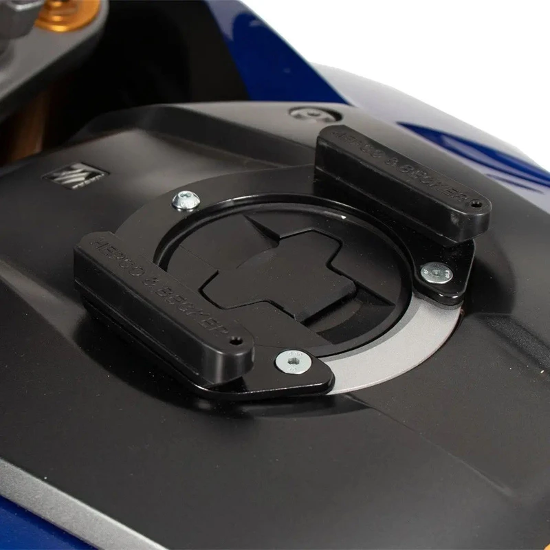 The Tank Ring tank bag mount from Hepco & Becker is the proprietary mounting plate needed to equip your bike with a Hepco & Becker tank bag. The tank ring is integrated to your bike’s fuel filler cap with screws and features small magnet for the bag to attach to. The magnets from the bag and tank ring come together to form a strong bond, only broken when deliberate force is applied.Â
