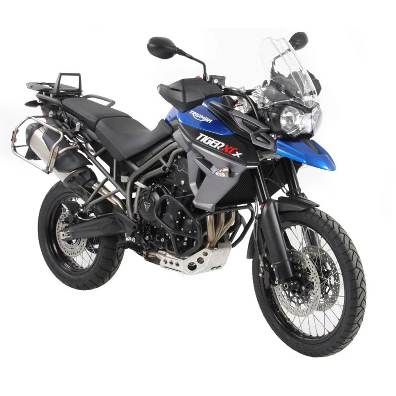 Hepco & Becker’s 651.7535 00 22-40 Cutout Side Carrier With Silver Xplorer Cases is made specifically for Triumph Tiger 800 (2015-current).