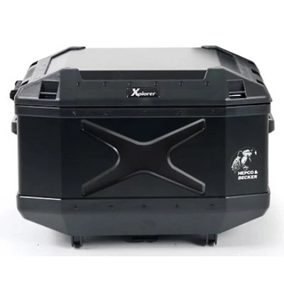 The elegant and rugged Xplorer cases have become one of Hepco & Becker’s top selling products since being introduced only a couple years ago. They are made of 1.5 mm thick anodized aluminum and ABS plastic to combine the best of both worlds. The aluminum has been anodized to prevent corrosion especially when putting wet items in the case. The plastic has been designed to absorb impacts. The angled structure of the cases provide for enhanced strength and durability. A clever lid hinge makes it so that you can remove the lid completely if needed making this is a top loader case that folds up to 90° for maximum access. Tie down points are molded into the top of the case allowing for additional attachment of H&B top bags or other luggage.