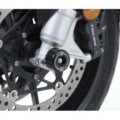 The R&G Fork Protectors limit damage to the fork end caps and brake calipers of your motorcycle in the event of a tip-over, drop or crash.