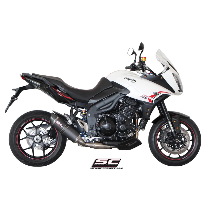 SC-Project’s T08-L01 Low Mount Oval Exhaust is made specifically for Triumph Tiger Sport 1050 (2016-current).