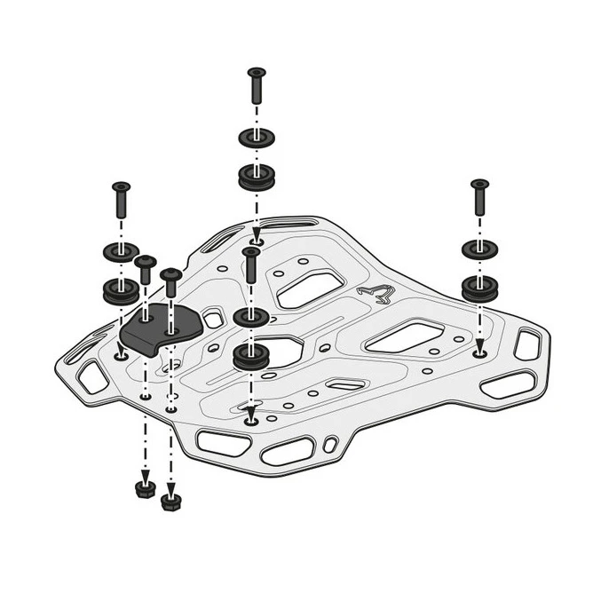 - Multiple functional bores: for TRAX top cases. SysBag with adapter plate are available separately with the appropriate adapter kit