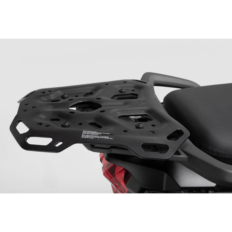 Bike-specific attachment elements guarantee best fit and a simple attachment to the original attachment points. Designed specifically for touring bikes, large street and sport touring bikes, the ADVENTURE-RACK has a large storage surface. Numerous large lashing eyes give tail bags a secure hold. The functional bores accept adapter kits to attach top cases from SW-MOTECH, Givi, Krauser and Shad or SysBags.