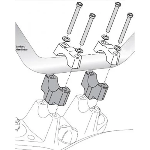 - No need to replace your handlebars – simply remove the original top clamp, place the riser between the handlebar and original bottom clamp, and reinstall top clamp using included hardware.