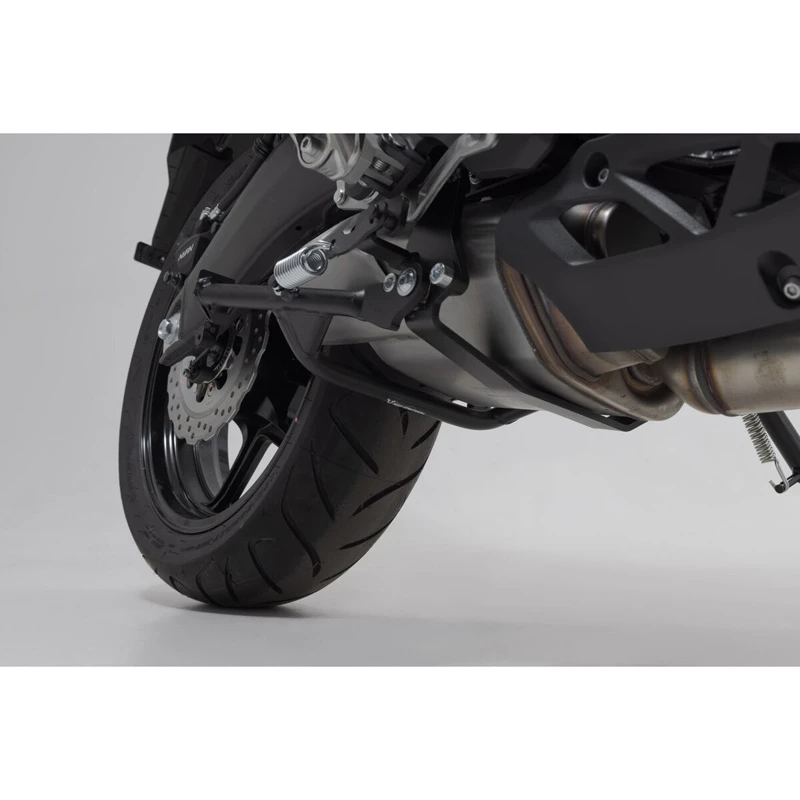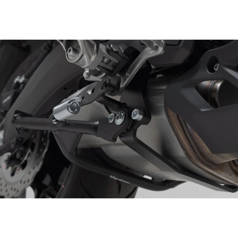 Sw-Motech’s centerstand is made from heavy-duty steel and offers safe stand, easy handling and best ground clearance. Centerstand provides mounting points for optional available engine guard extension to protect rear linkage while driving.