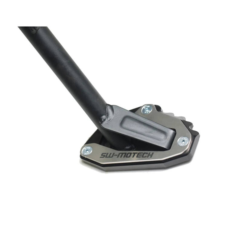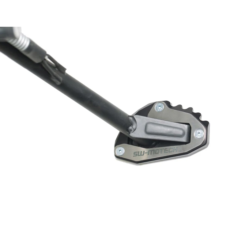 The Sw-Motech Sidestand Foot Enlarger increases the surface area of the factory kickstand on Africa Twin CRF1000L to enhance stability and minimize sinking on softer terrain when parked. CNC machined aluminum provides a precise fit while a stainless steel retention plate connects the two pieces together with countersunk hardware. The aluminum base-plate also features built in ridges to grip your boot for easy engagement. Park your motorcycle confidently with this sturdy sidestand foot enlarger from Sw-Motech.